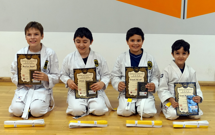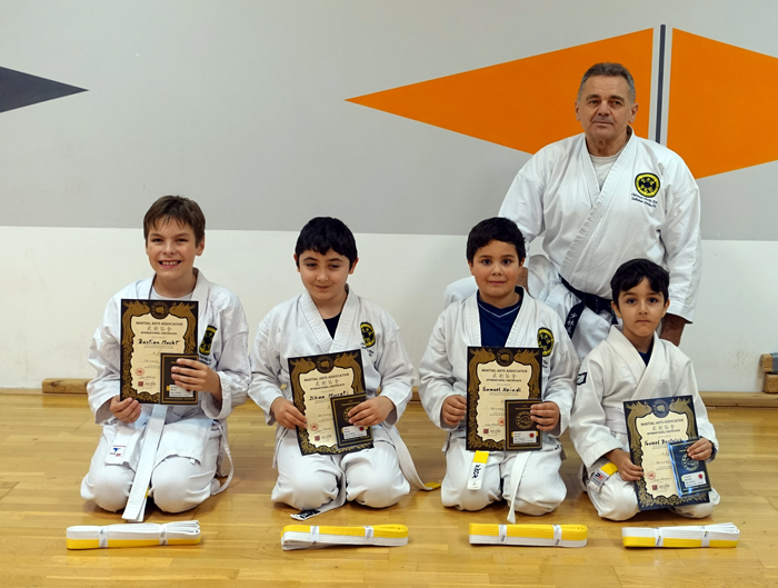 Gürtelprüfung zum 9. Kyu geschafft ! Vier aktive und fleißige Schüler konnten am Di. 11.11.25 die Gürtelprüfung zum weißgelben Gurt erfolgreich ablegen.